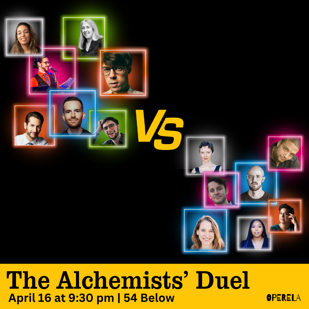 Five pairs of award-winning composer/librettist teams enter the ring to conjure brand-new works sparked by freshly commissioned ideas, each fighting for glory, bragging rights, and a $5,000 prize to be donated to the charity, nonprofit, or project of their choosing.